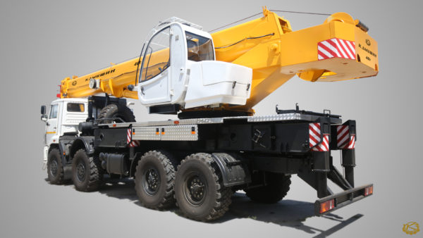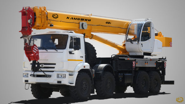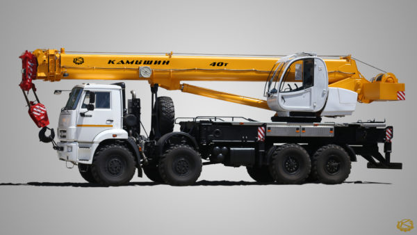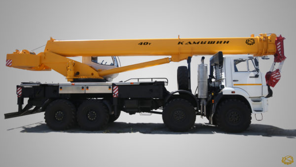 Автокран КС-65740-4 грузоподъемностью 40 т с длиной стрелы 30,34 метр и грузовым моментом 120 т*м, оснащен четырехсекционной стрелой ОВОИДного сечения из высокопрочной стали. Крановая установка смонтирована на шасси базового автомобиля КАМАЗ 63501-51,63501-52, с мощностью двигателя 319,5 и 360,3 л.с. При этом, автокран развивает скорость до 60 км в час, с массой в минимальной комплектации 26,3 тонны. Отдельновозимый противовес в 7 тонн не включен в базовую комплектацию. Максимальный вылет стрелы 39,34 м, при комплектации гуськом длиной 9 м.